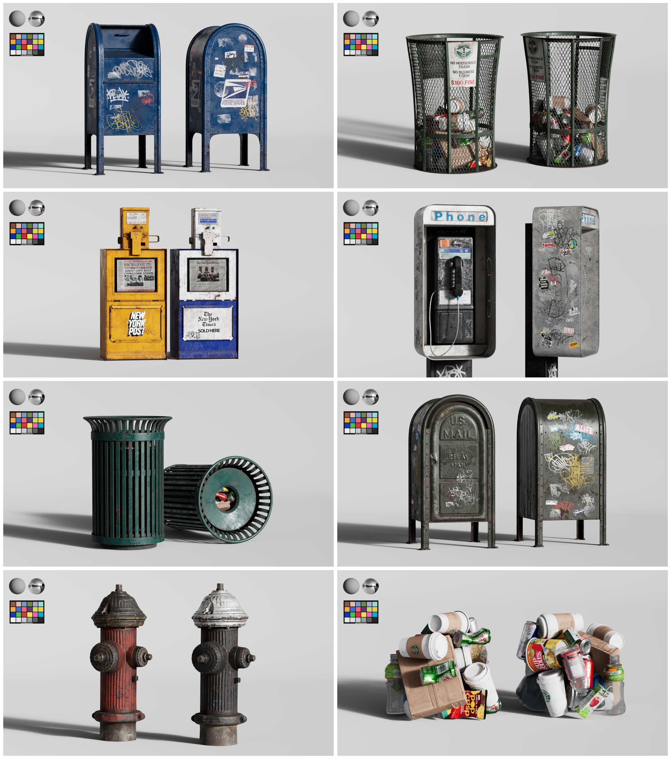 This asset includes 7 highly detailed New York City street props, perfect for adding realism to urban scenes in VFX or architectural visualization.