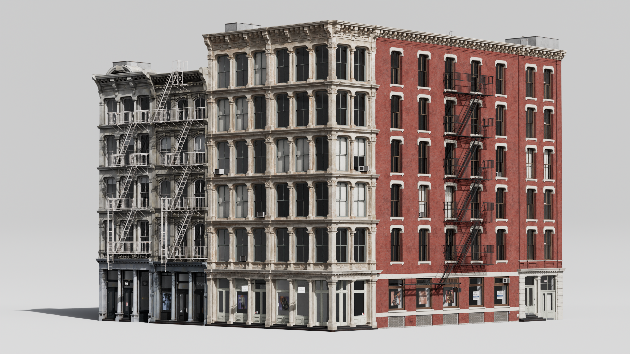 This pack includes a street corner (Greene St & Broome St), featuring 3 highly detailed New York City buildings.